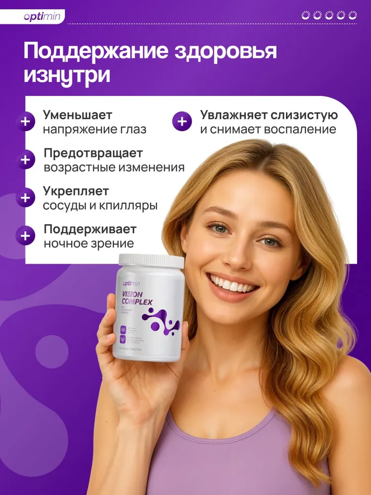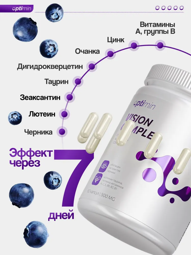 Комплекс для зрения и здоровья глаз разработан для защиты и поддержки органов зрения при высоких нагрузках на глаза.